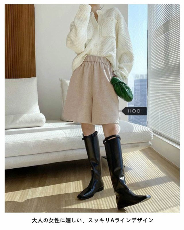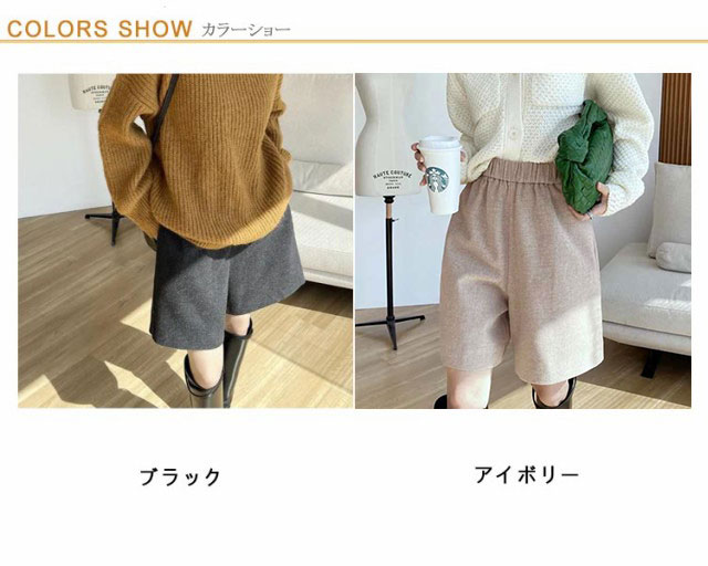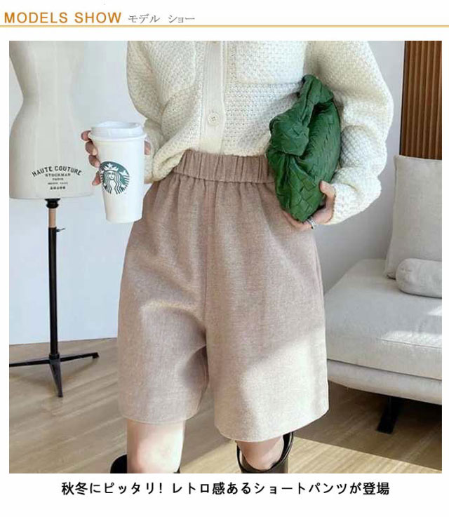 ハーフパンツ 秋冬 レディース ウールタッチ ショートパンツ 膝丈 無地 ミニ丈 キュロットパンツ 短パン ハーフ丈 ひざ上 Aライン 五分丈 ショーパン 体型カバー ゆったり 暖かい 防寒 シンプル 上品 きれいめ 秋冬 秋 冬 送料無料