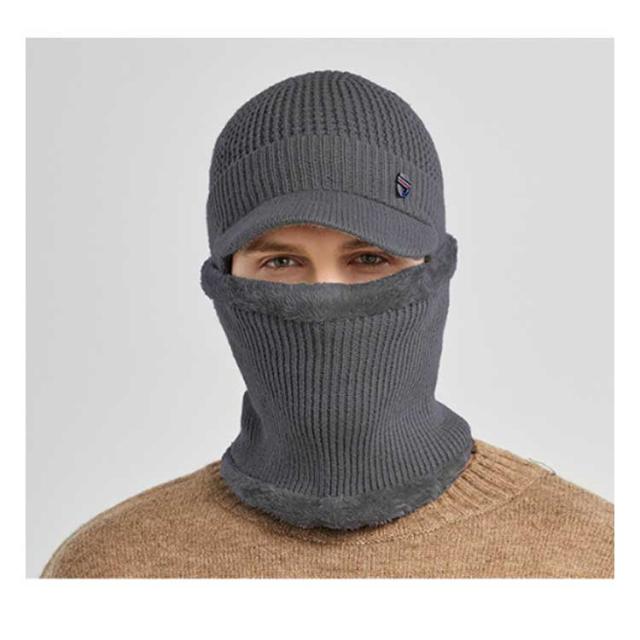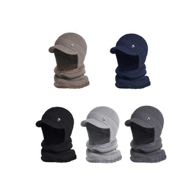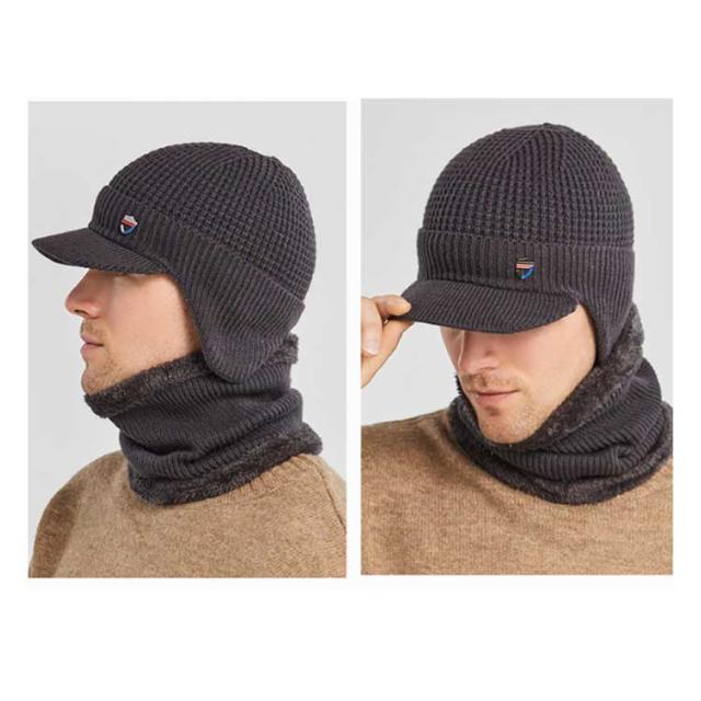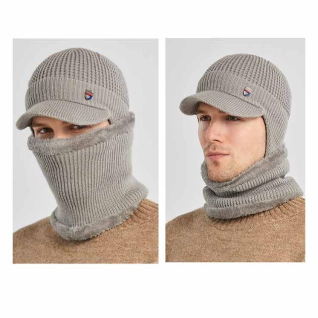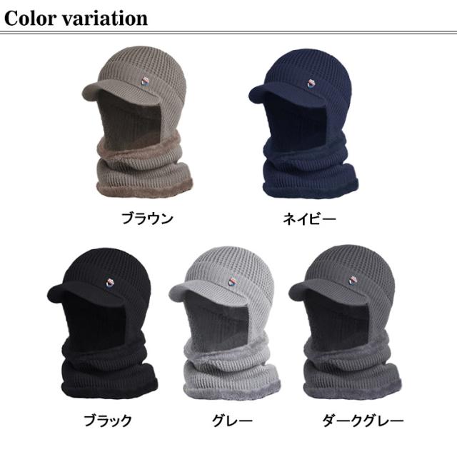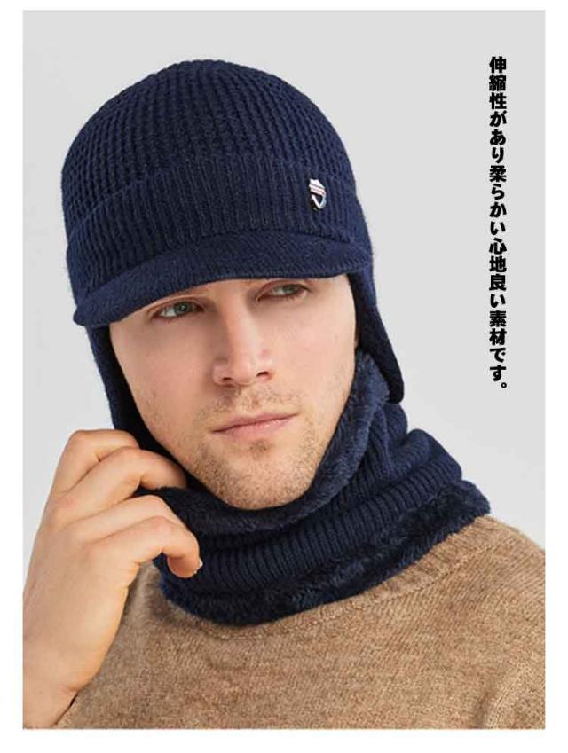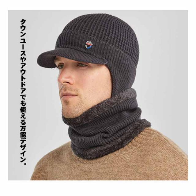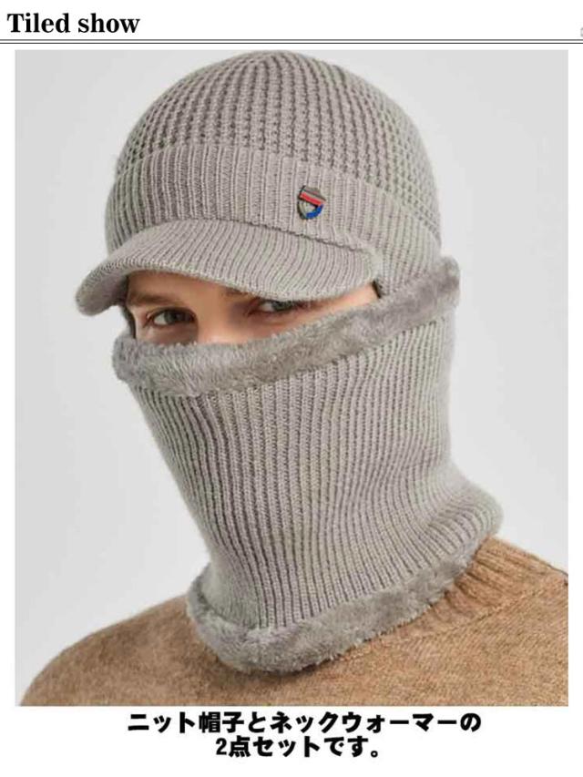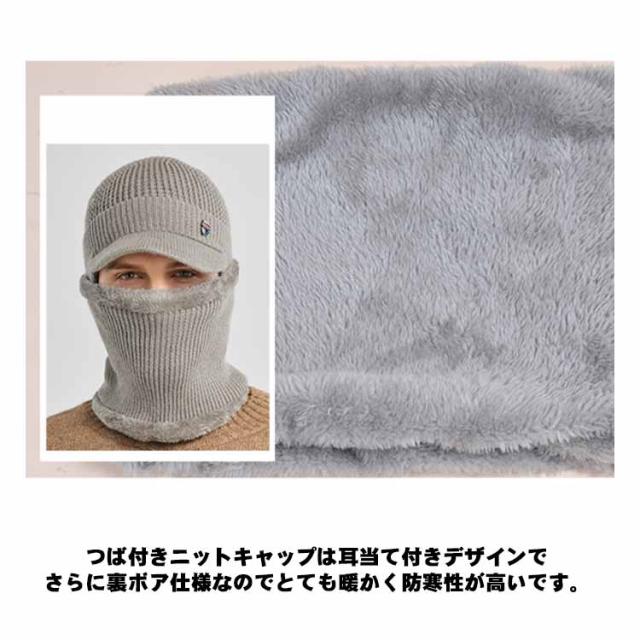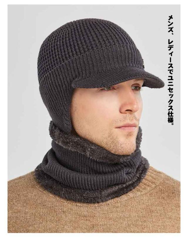 つば付き 裏ボア ニットキャップ ゴルフウェア 耳当て ネックウォーマー 防寒 帽子 耳当て ニット帽 目出し帽 キャスケット レディース 男女兼用 冬 裏起毛 保温 ビーニー ニット帽子 メンズ 暖かい 伸縮性 2点セット