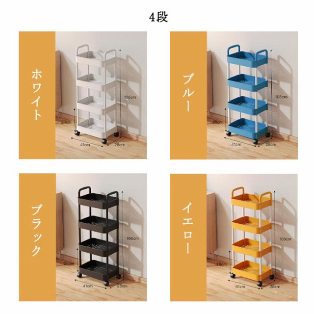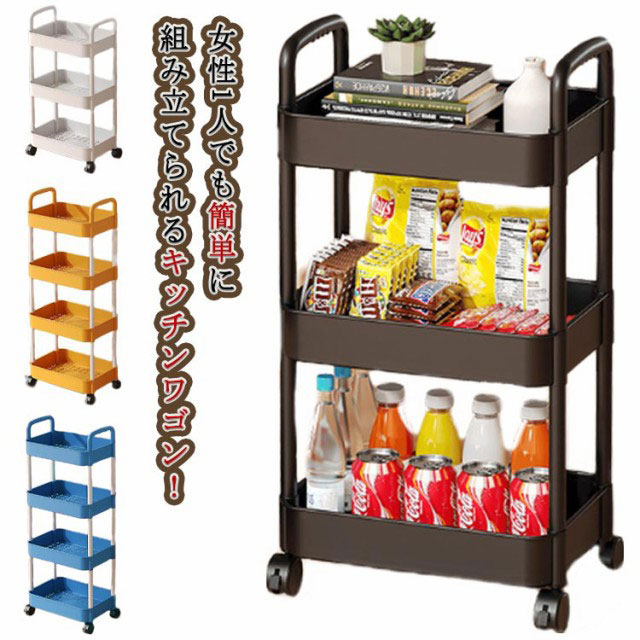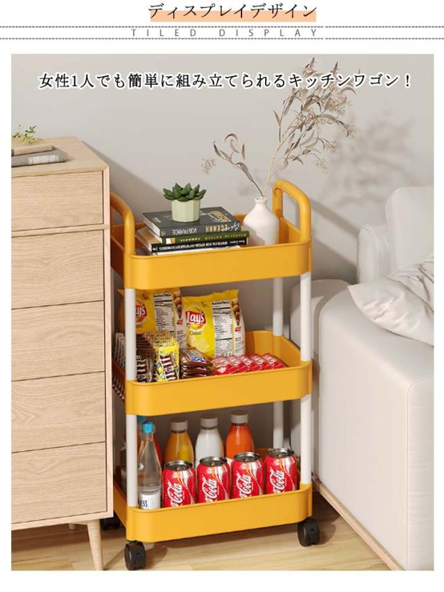 おしゃれ キッチン用 キッチンワゴン サイドワゴン 省スペース 収納ラック 収納ワゴン バスケット 3段 4段 大容量 収納ワゴン 子供部屋 おもちゃ収納 リビング 簡単組立 家庭用 通気性