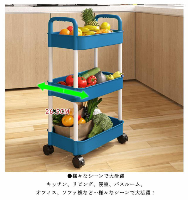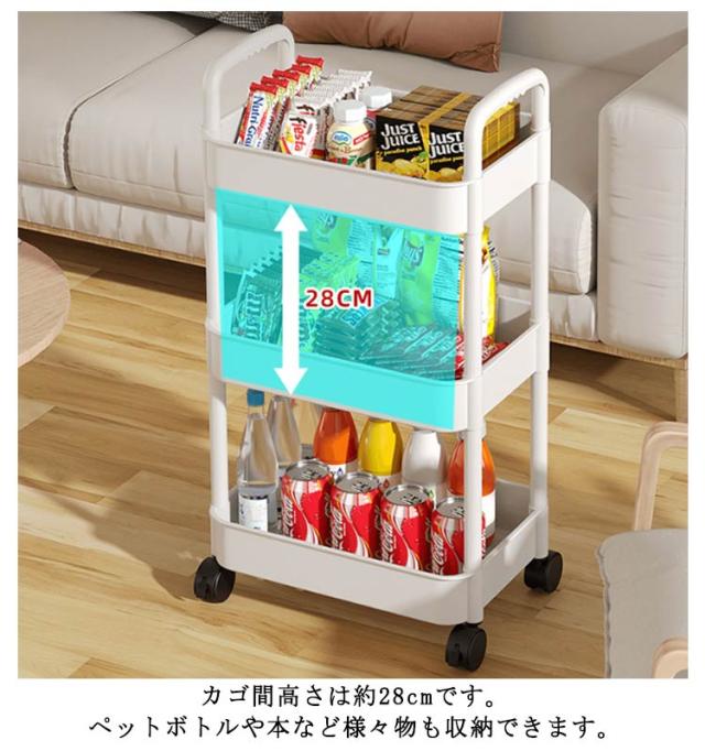 | 女性1人でも簡単に組み立てられるキッチンワゴン! ●収納力抜群 カゴ間高さは約28cmです。ペットボトルや本など様々物も収納できます。 ●高品質素材 安定性・耐久性も抜群!たくさん収納しても、ご安心してお使いいただけます。 ●キャスター付き 360度自由に回転することもでき、キッチンからリビングヘ、リビングから寝室へ自由自在。 ●簡単組み立て 用途やスペースにあわせて、3段or4段ワゴンに簡単組み立て! ●通気性良い 底板はメッシュ仕様で、水/ホコリがたまりにくい!通気性も良くて、野菜やタオルの収納にも合う! ●様々なシーンで大活躍 キッチン、リビング、寝室、バスルーム、オフィス、ソファ横など…様々なシーンで大活躍! ●落下防止 高さは約6cmなので、物が落下にくいです。 | |