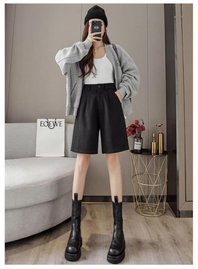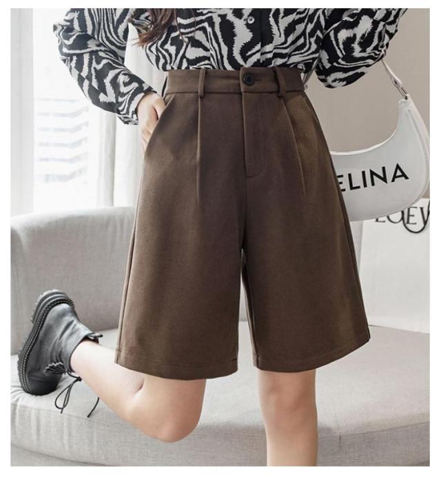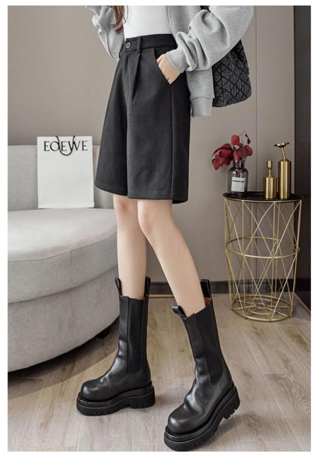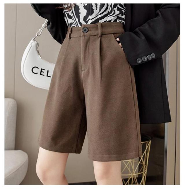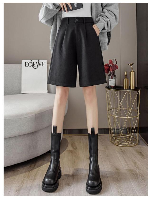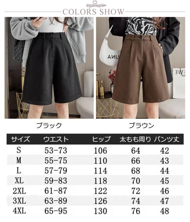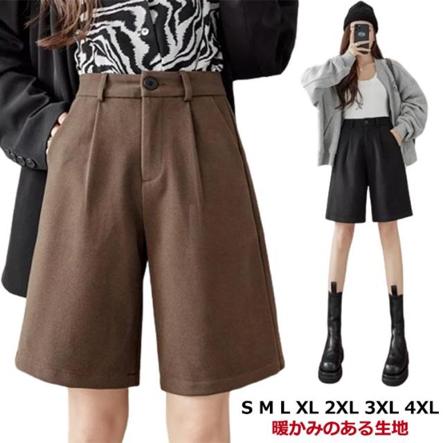 ハーフパンツ ウールタッチ レディース ワイドパンツ フェイクウール ショートパンツ 五分丈 厚手 防寒 暖かい 秋冬 春秋 ワイド パンツ カジュアル シンプル ビジネス シンプル 大人可愛い 秋 冬 大きいサイズ 送料無料