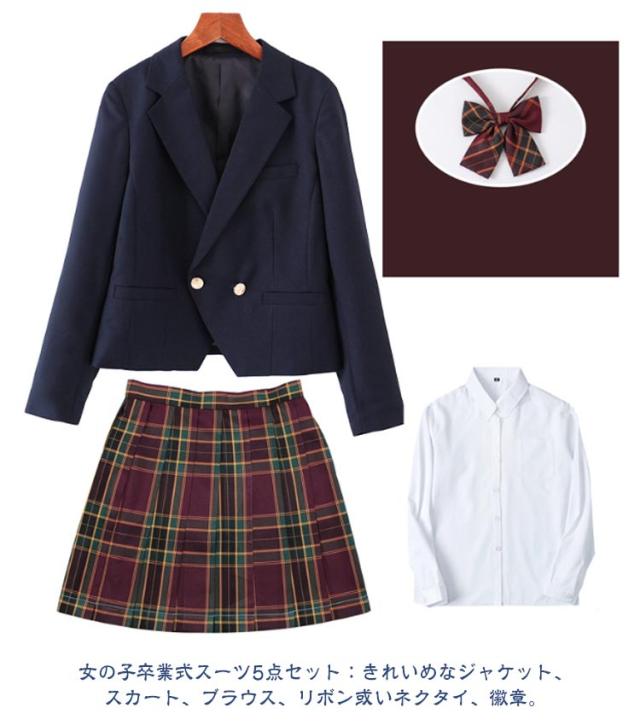 | 女の子卒業式スーツ5点セット:きれいめなジャケット、スカート、ブラウス、リボン或いネクタイ、徽章。 フォーマルなシーンに:チェック柄のスカートはどれも派手になりすぎない落ち着きのある上品な色合い。 発表会やお受験、入学式、卒業式などのフォーマルなシーンに一着は持っておきたいマストアイテムです。 リボンとチェックスカートがとってもキュート。お子様の好みに合わせてお選びください。 入学式や卒業式、結婚式にはもちろん、 モノトーンでまとめているので、 法事やお受験といったシーンにも着回せます。 ジャケットの下にブラウスをお召頂ければ 一年中着回せる万能アイテムです。 | |