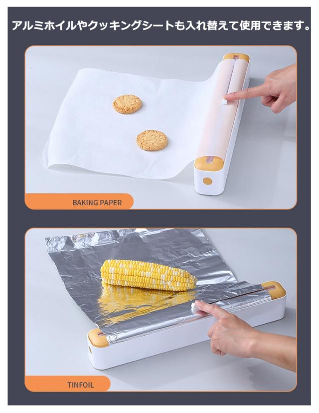| 3タイプあり 置く/吸盤/磁石 ・冷蔵庫や壁に貼り付けでき、スムーズにカットできるラップカッター。 ・冷蔵庫など磁性のある壁に貼り付けられるので、取り出しやすいところに収納可能。 ・ラップを芯に取り付けるからスーッと回転してスムーズに引き出せます。 ・双方向スライドナイフつきで、ラップを簡単に引き出して、好きな長さに簡単にカットできて使いやすいです。 ・アルミホイルやクッキングシートも入れ替えて使用できます。 | |