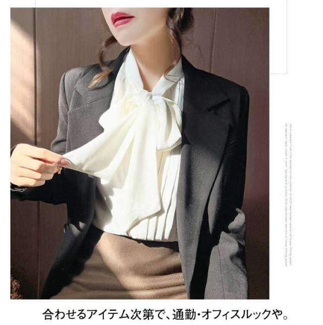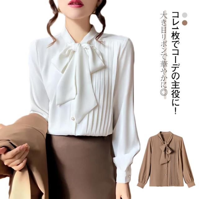 | コレ1枚でコーデの主役に!大き目リボンで華やかに◎ 春にピッタリのボウタイブラウス。 柔らかな肌触りでジャケットのインナーとしても活躍できる1枚です! 上品で大人可愛い、フォーマルでもカジュアルでも使える。 合わせるアイテム次第で、通勤・オフィスルックや。 きれいめカジュアルにデイリーまで様々なシーンに活躍するブラウスです。 | |