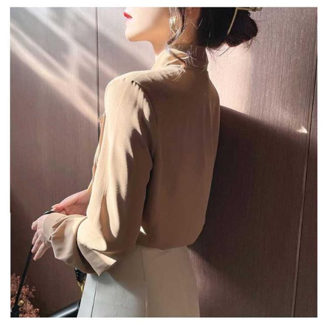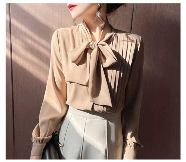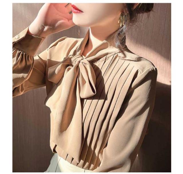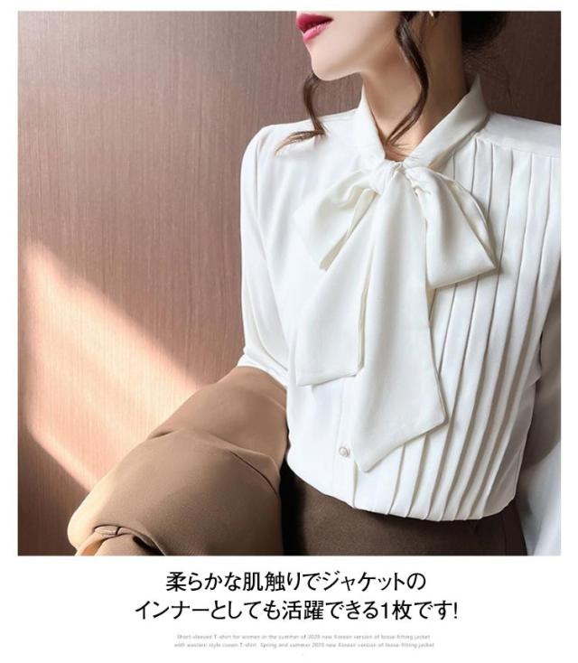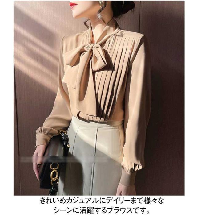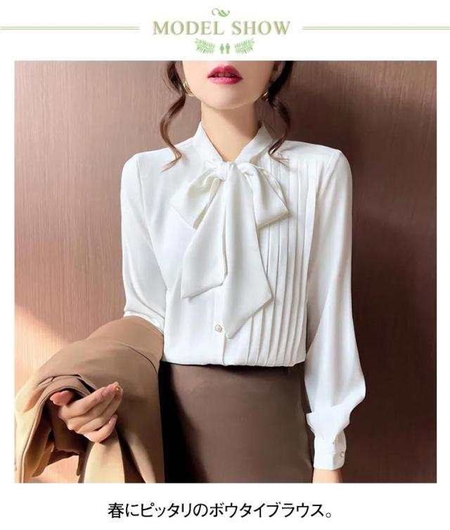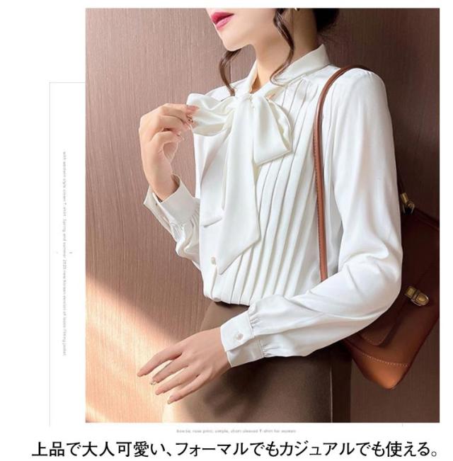 ブラウス レディース ボウタイシャツ リボン付き シフォンブラウス 長袖 とろみシャツ トップス シャツブラウス トップス 無地 ゆったり 大きいサイズ 上品 きれいめ 大人 オフィス カジュアル 通勤 通学 春 夏 秋 冬