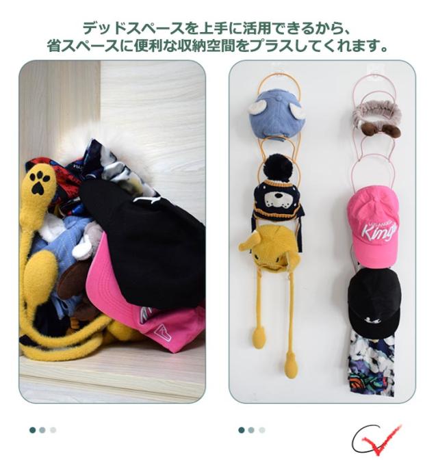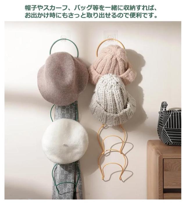| ドア扉に掛けるだけの帽子ハンガー。 帽子やスカーフなどを縦にすっきり収納できる連結ハンガー10個セット。 リングとリングを引っ掛けるだけで簡単に連結、組み合わせは自由自在。 フックにサッと掛けるだけなので、手間もかからず、帽子の型崩れも防いでくれます。 デッドスペースを上手に活用できるから、省スペースに便利な収納空間をプラスしてくれます。 収納に困る帽子等もスッキリ一括収納が可能です。 帽子やスカーフ、バッグ等を一緒に収納すれば、お出かけ時にもさっと取り出せるので便利です。 高耐荷重の鉄製なので、安定性抜群!ドア用フック、粘着フック(のり残らず)、釘フックの3種類付きで、あらゆる場所に設置できます。 | |