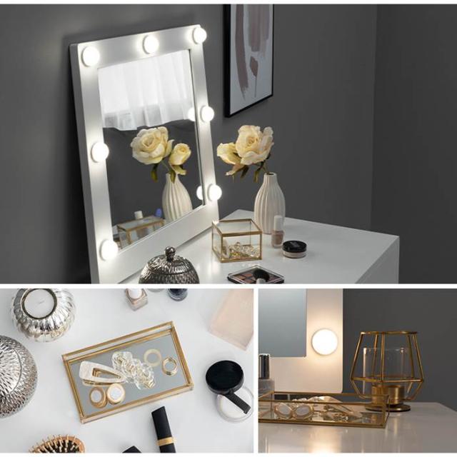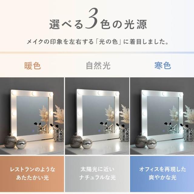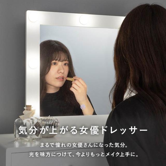女優ミラー ドレッサー 通販 MD-6576WH 一面鏡ドレッサー ミラー 1面ドレッサー 鏡台 化粧台 椅子付き 白 かわいい LEDライト付き 正方形 おしゃれ シンプル 一人暮らし 幅75×奥行47×高さ122 スツール 高さ45cm 収納家具 インテリア