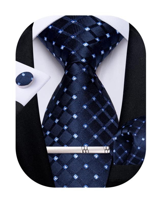 DiBanGu ブルー 格子 ネクタイハンカチ カフスボタン メンズ ネクタイ セット フォーマル 卒業式 ビジネス