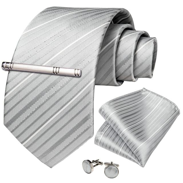 DiBanGu ネクタイ シルバー 結婚式 ストライプ ネクタイ ハンカチ タイピン セット ビジネス 入学式 卒業式
