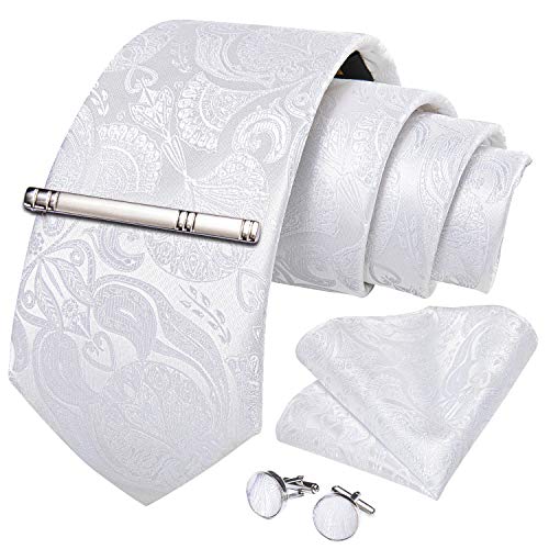 DiBanGu ネクタイ 結婚式 白 花柄 ネクタイ ホワイト チーフ タイピン ギフトボックス付き プレゼント 婚礼