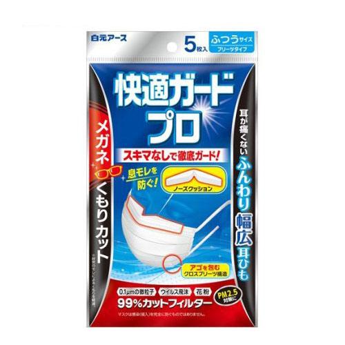 快適ガードプロ プリーツタイプ ふつうサイズ (5枚入) [微粒子 花粉 ウィルス飛沫 白元アース]