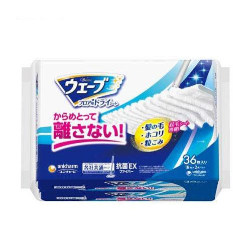 ウェーブ フロア用ドライシート 掃除用品 (36枚入) [住宅用お掃除シート 使い捨て 家具 電化製品 テーブル 戸棚 階段 ユニ・チャーム]