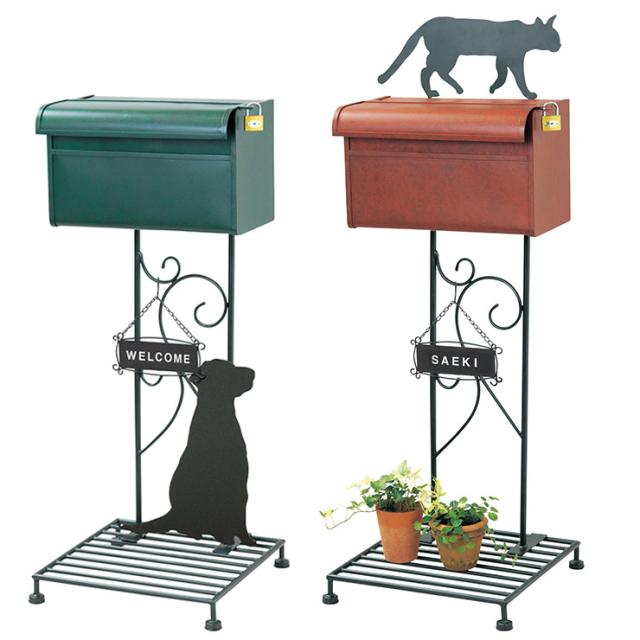 ヴィンテージスタンドポスト | ドッグキャットスタンドポスト | 木目調キーロック式ポスト |