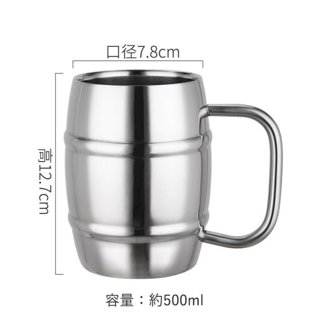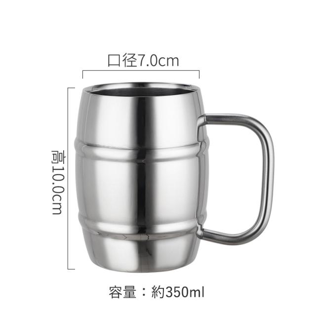 コップ マグカップ ビールジョッキ ビアジョッキ ダブルステンレス 真空二重構造 保温・保冷 樽型 ステンレス