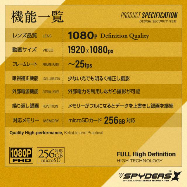 スパイダーズX USBメモリ型カメラ 1080P 小型カメラ 防犯カメラ 暗視補正 256GB対応 A-408