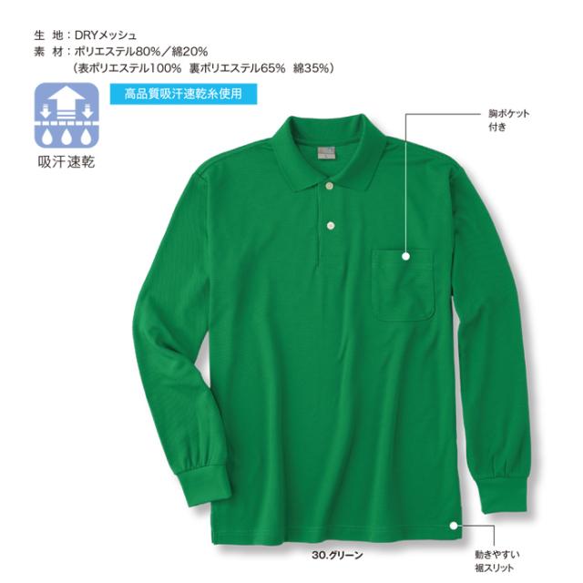 ポロシャツ 小倉屋 POLOIZM 長袖 DRYメッシュ 吸汗 速乾 通気 春夏 長袖ポロシャツ 胸ポケット 90071 SS~5L 14色【送料無料】ビジネス ウエア 無地 男女兼用 仕事着 事務服 保育士 介護士 看護師 作業服 涼しい クール 熱中症対策 小倉屋定番ポロシャツ agesugi_sfa