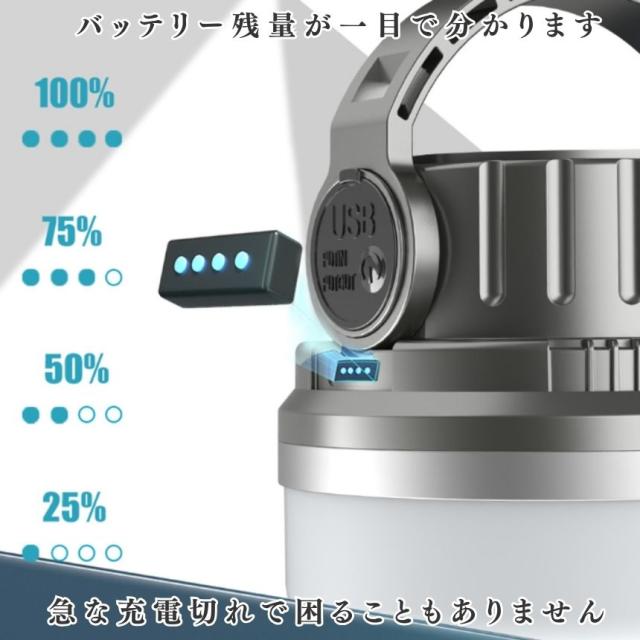 - 明るさも十分。使い勝手もいいです。 配送も早かったです! キャンプに使う予定ですが、形も良いしフックも付いてるので満足。 ランタンとしても十分、懐中電灯もかなり明るいです。 一つ言うとしたら、簡易的で良いので日本語の説明書が入っていると完璧かなと思います!
