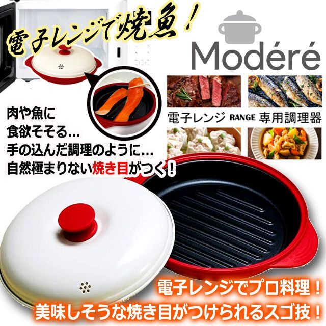 1台8役の多彩な調理!Modere[モーデリー]電子レンジ専用調理器らくらくクック(丸型) (レシピ 波型底 直火 焼魚 キッチン)