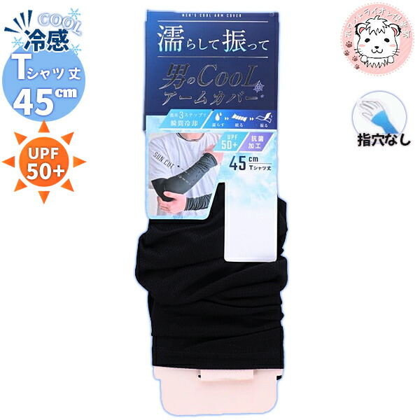 メンズ uv アームカバー 濡らして 振って 男のCOOL Tシャツ丈 45cm | UPF50+ 抗菌加工 紫外線対策 UVカット ストレッチ 日焼け防止 日焼け対策