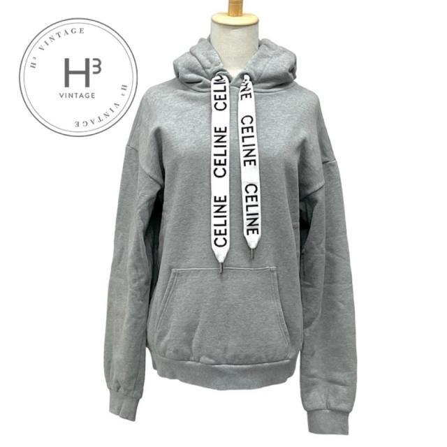 セリーヌ CELINE トップス コットン グレー ロゴ ルーズフーディー