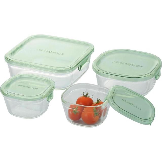 【お取り寄せ】イワキ iwaki 耐熱ガラス 保存容器 グリーン 4個セット パック&レンジ PSC-PRN4G1 ガラス 保存 レンチン