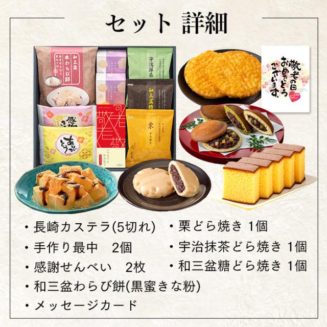 敬老の日 ギフト スイーツ [ お菓子 和菓子 グルメ 食べ物 カステラ 挨拶 詰め合わせ セット どら焼き 2025 贈り物 ] 五華 KR3L 長崎 最中 贈答 限定 送料無料 プレゼント 人気 詰合せ お土産 送料込み せんべい わらび餅