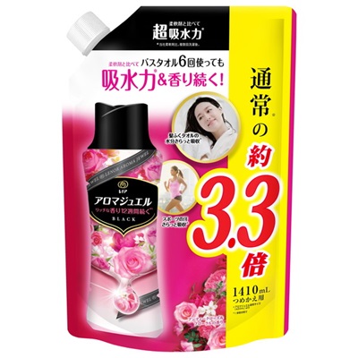 お洗濯のはじめに入れるだけ!通常の約3.3倍(アロマジュエル通常サイズ(420ml)より)