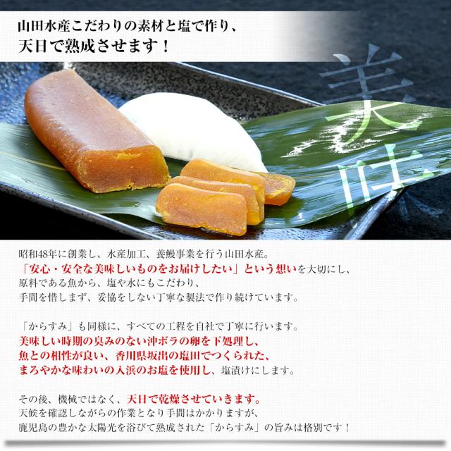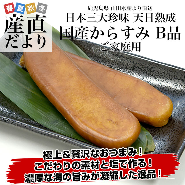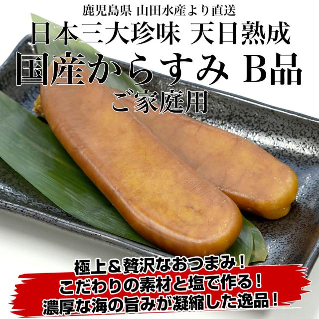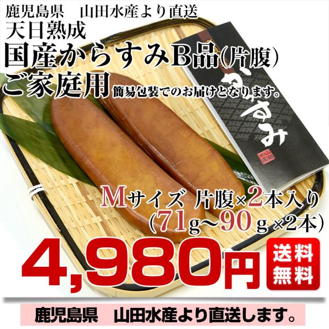 鹿児島県 山田水産より直送 天日熟成 国産からすみ B品 ご家庭用 Mサイズ 片腹× 2本入り(71gから90g×2本) 送料無料 カラスミ ボラ 珍味 魚卵 おつまみ ※クール冷凍便 【発送時期:カート内に記載しております】