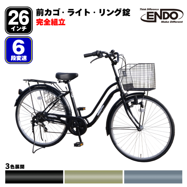 【置き配商品】自転車 26インチ ママチャリ シマノ 変速 ライト 前カゴ シティサイクル セネット 自転車本舗 エンドウ商事 通学 完全組立 送料無料