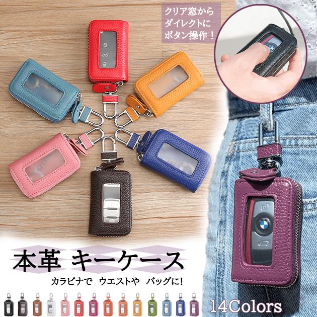 キーケース レディース スマートキーケース スマートキー 窓付き 本革 車の 鍵カバー カード入れ付き 小銭入れ 財布 コンパクト