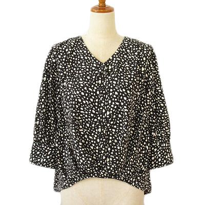 【中古】オゾック OZOC ハートレオパードブラウス 38 黒 ブラック レディース