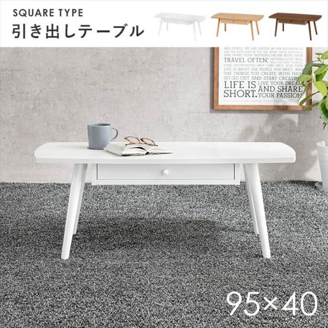 センターテーブル 引き出し 通販 MT-6351 ローテーブル テーブル 机 引き出し付き 収納付き 長方形 幅95 木製 天然木 おしゃれ シンプル 一人暮らし ワンルーム 子供部屋 幅95×奥行40×高さ37cm 家具 インテリア
