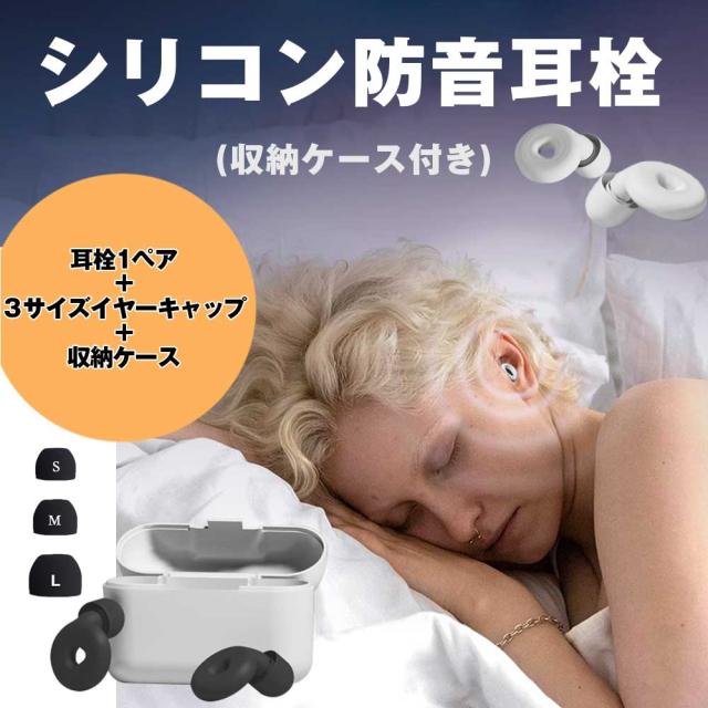 耳栓 シリコン 睡眠 ノイズキャンセリング 完全遮音 聴覚過敏 安眠 集中 いびき 痛くない 3サイズイヤーキャップ付属 ケース付き 仕事 勉強 防音グッズ 男女兼用 1ペア