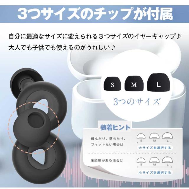 ●3つサイズの最も快適なチップが付属し、大人でも子供でも自分に最適なサイズに変えられるので、抜群のフィット感が楽しめる♪静かな睡眠環境へ〜