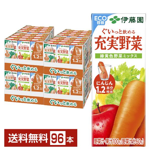 伊藤園 充実野菜 緑黄色野菜ミックス 200ml 紙パック 24本×4ケース(96本) 送料無料