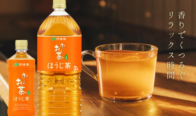 | お〜いお茶 ほうじ茶は、旨みや香りの成分が豊富な国産一番茶100%を使用した、甘く香ばしい味わいのほうじ茶飲料。 国産一番茶の中でも当社が厳選した「専用一番茶」を丁寧に芯まで焙煎することで、ほうじ茶特有の甘香ばしい“しあわせの香り”を最大限に引き出しました。苦渋みが少なく香り高い味わいが特長です。 |