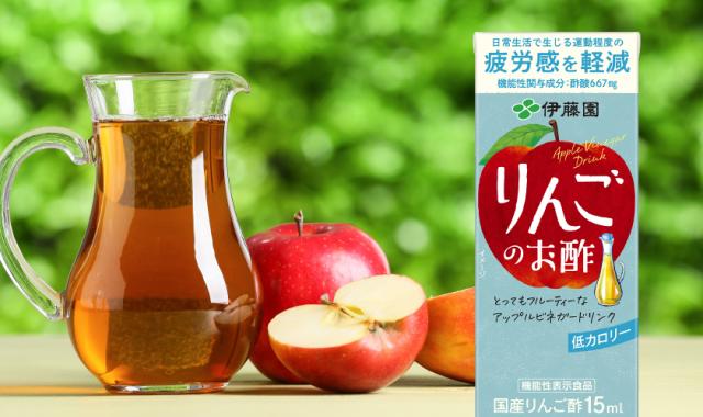 りんごのお酢は、日常生活で生じる運動程度の疲労感を軽減する機能があることが報告されている、りんご酢由来の機能性関与成分「酢酸」を667mg含有した、機能性表示食品のりんご酢飲料です。