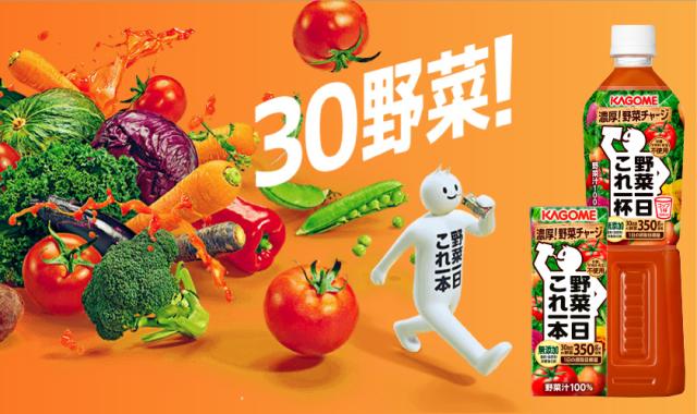カゴメ「野菜一日これ一本」は、ぎっしりつまった30品目の野菜をすばやくチャージできる野菜飲料。