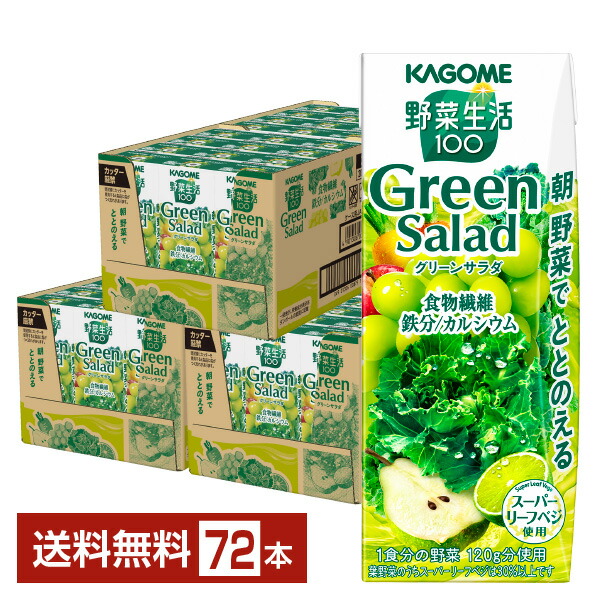 カゴメ 野菜生活100 グリーンサラダ 200ml 紙パック 24本×3ケース(72本) 送料無料