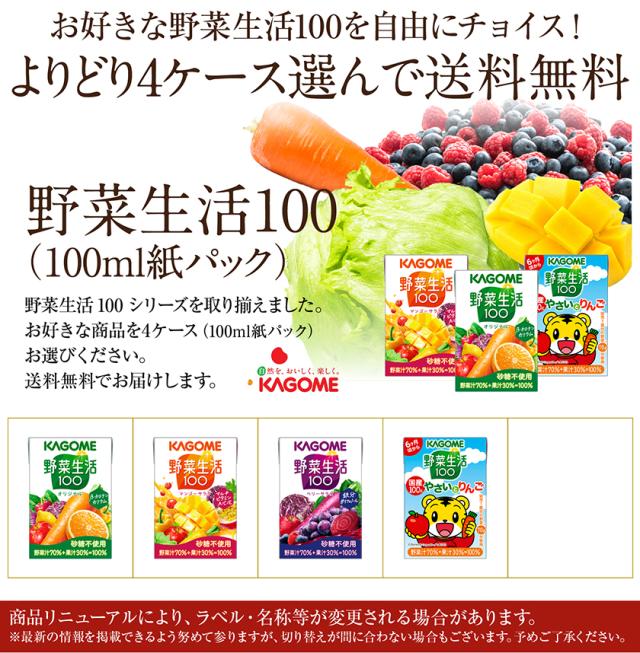 選べる カゴメ 野菜生活100 よりどりMIX 100ml 紙パック 120本 (30本×4箱)よりどり4ケース 送料無料