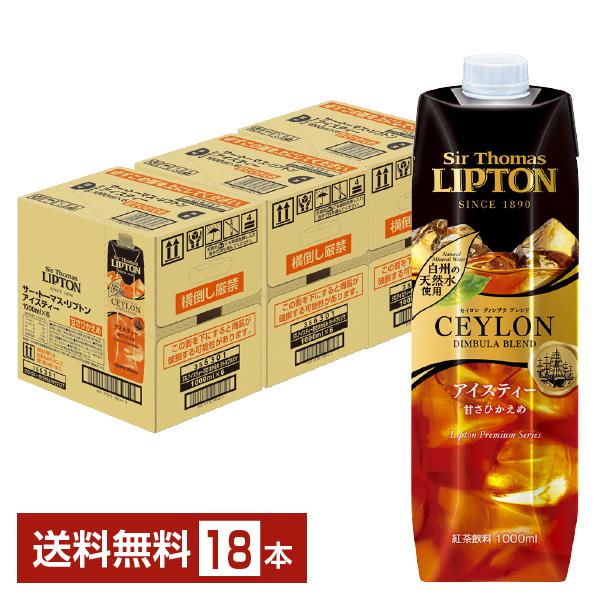 キーコーヒー サー トーマス リプトン アイスティー 甘さひかえめ テトラプリズマ 1L 1000ml 紙パック 6本×3ケース(18本) 送料無料