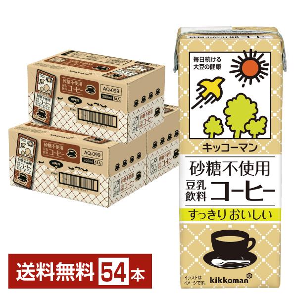 キッコーマン 砂糖不使用 豆乳飲料 コーヒー 200ml 紙パック 18本×3ケース(54本) 送料無料