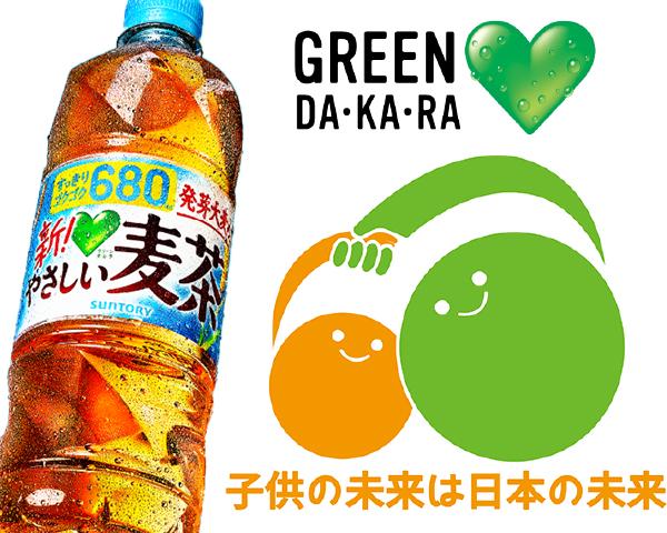 | GREEN DA・KA・RA やさしい麦茶は、香ばしくてすっきり飲みやすい、心とカラダにやさしい麦茶。 サントリーが培ってきた加工技術のノウハウを活かし、麦茶のためだけに独自開発した“発芽大麦”※の使用量を約3倍に増やしました。 すっきりやさしい味わいはそのままに、暑くなる時期の水分補給としても一層おいしくお飲みいただけるよう、より甘香ばしく飲みごたえのある中味に仕上げています。 カフェインゼロ・アレルギー特定原材料等28品目不使用で安心してお飲みいただけます。 ※大麦を発芽させた原料のこと。サントリーの製麦会社=サントリーモルティング(株)で麦茶専用の発芽大麦を開発しました。 |