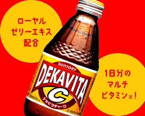 ![]() | 「デカビタC」は、ビタミンCをはじめビタミンB郡など、1日分のマルチビタミン※とローヤルゼリーエキスを含んだ大容量のドリンクです。 発売当時、栄養ドリンクは100ml前後の瓶が定番商品だったところ、デカビタCは異例の210mlを実現。ネーミングも大容量ということがストレートに伝わるよう「デッカイビタミンC」から付けられました。 ※1日分以上のビタミンB1・ビタミンB2・ビタミンB6・ビタミンC・ナイアシンを「栄養素等表示基準値」を目安に配合しています。 |