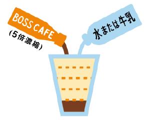 割るだけ ボスカフェは、お好みの量の牛乳や水で割るだけで、お店のようなぜいたくな味わいのカフェラテやブラックが手軽に楽しめる濃縮タイプ飲料です。1本で約10杯分つくることができるのでコストパフォーマンスが良く、軽くて小さいので買いものがラクチンで、冷蔵庫での収納もスッキリ!