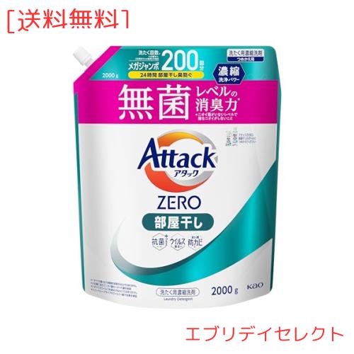 アタックZERO アタック液体史上 最高の清潔力。無菌レベルの消臭力 部屋干し 詰め替え 2000g