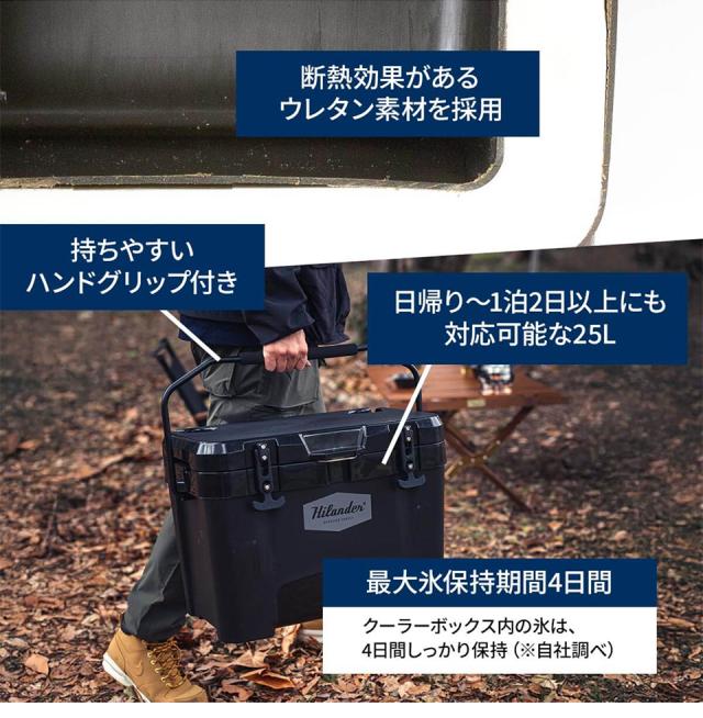 ハイランダー キャンプクーラー ハイランドクーラーボックス 25L クーラーBOX 保温 保冷 収納 バーベキュー【1年保証】 25L ブラック