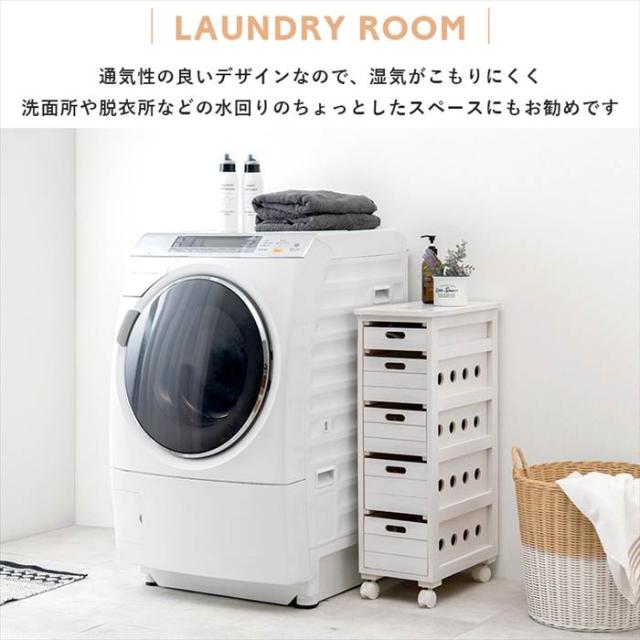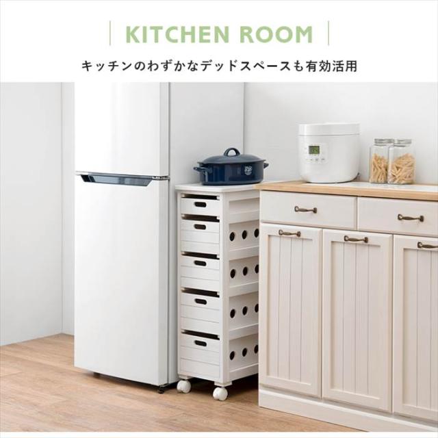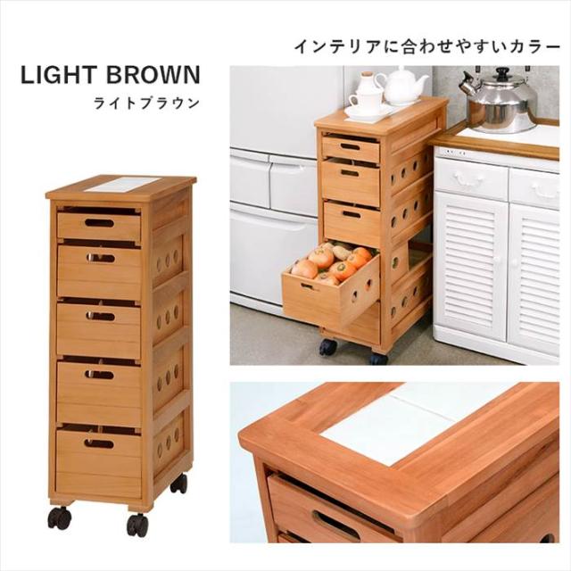 キッチンストッカー 幅25cm 通販 MUD-6781 野菜ストッカー キッチンワゴン キッチン ストッカー 木製 桐 キャスター付き タイル天板 作業台 引き出し 5段 リビング 衣類収納 幅25×奥行40×高さ79cm キッチン収納 収納家具 インテリア
