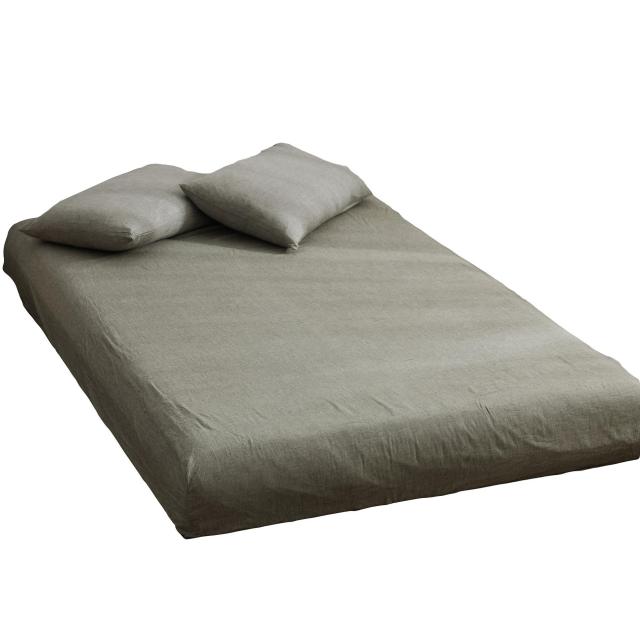 【オーガニックコットン洗いざらしの綿100%】洗いざらし仕上げにより最初から肌になじむように仕上げました。洗濯後のシワも味わいになる洗いざらしの綿です。洗いざらし綿はまるでお洋服のようで、使い込んだ綿だけが持つ風合いに、肌に優しくなじむ柔らかな肌ざわりです。グレーな色合いで幅広い年齢の方にお使いいただけます。