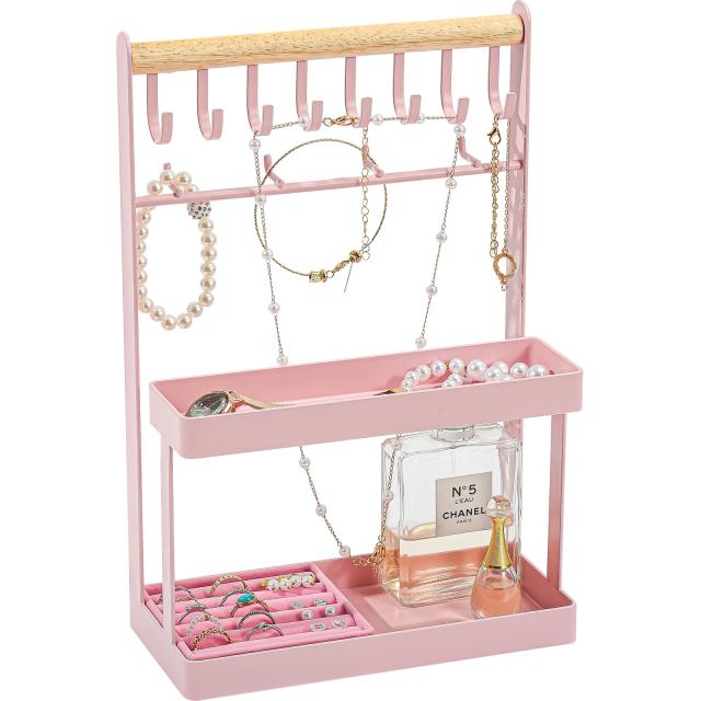 Lolalet ジュエリースタンド アクセサリー収納 指輪ケース付き ネックレス・ブレスレット掛け イアリング・ピアススタンド 鍵・腕時計・